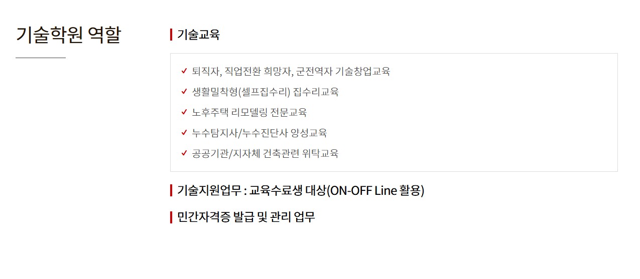 - 집수리창업&자격증취득 - 주택전기누전교육 - 싱크대 리폼교육 - 누수탐지교육 - 마루복원보수 - 타일복원보수 전문기술이론과 풍부한 현장경험으로 구성된 전문교재와, 실전적인 실습교육 ☯